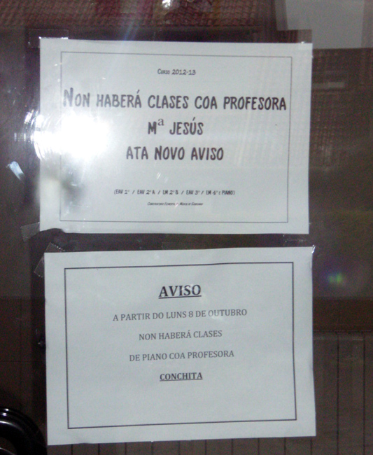 - O Conservatorio oficial de Gondomar "a medio gas", sen clases de piano e tres baixas sen cubrir.